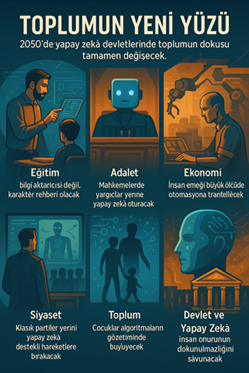 2050’de yapay zekâ devletlerinde toplumun dokusu kökten değişecek. İnsan hayatının her alanı algoritmaların yönlendirdiği bir düzen içinde şekillenecek.