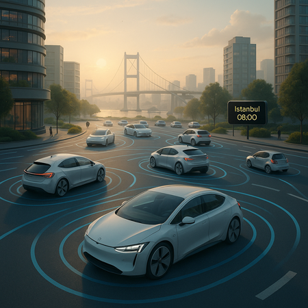 Sabah saat 08.00… İstanbul’da trafik yok. Çünkü artık herkesin arabası yok; herkesin erişimi var. Otonom araçlar, sabah vardiyasını bilen, okul saatlerini ezberleyen, yaşlıyı önceleyen bir zeka ile çalışıyor. Boğaz köprülerinden geçerken araçlar ne korna çalıyor ne de fren yapıyor. Şehir birbirine akıyor, tıpkı sinir hücreleri gibi.